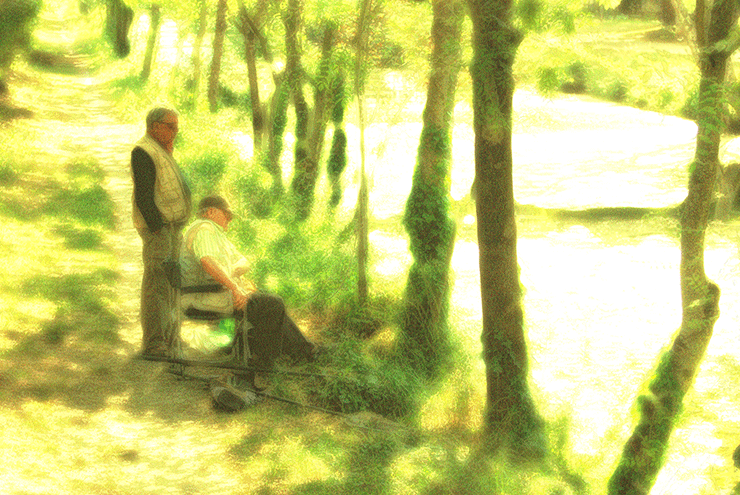 Part of a series of photos on the history of French Art. The 2 fishermen were photographed in La Rochelle and then photshoped